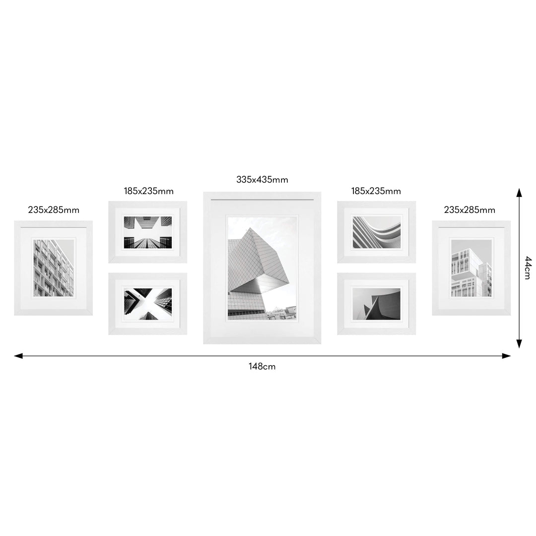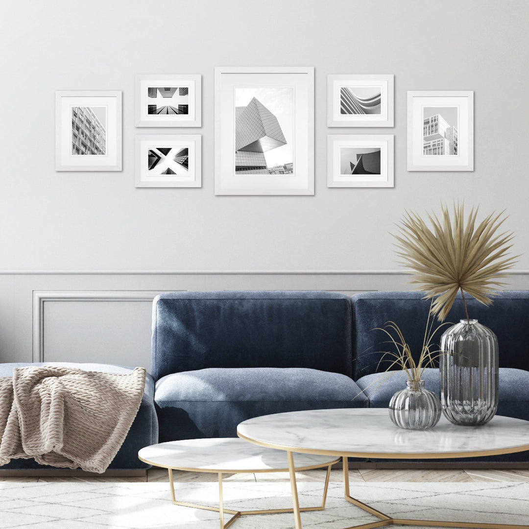 This boxed set includes seven contemporary frames in a curated mix of sizes - perfect for creating a dynamic, salon-style arrangement. Whether you're showcasing family portraits, travel prints or art, each frame is thoughtfully double-matted to elevate your display.